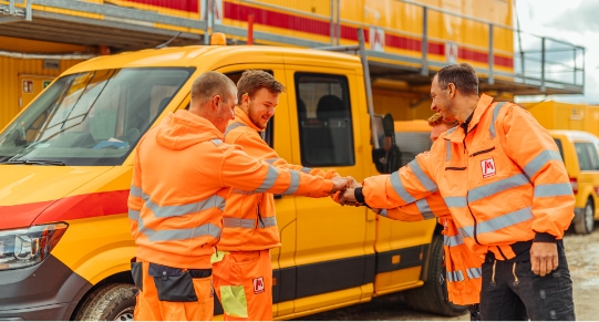 Mit unseren Baustellenfahrzeugen gewährleisten wir deine Mobilität, deine Kolleginnen und Kollegen holen dich ab und nehmen dich mit zur Baustelle. Für die Berufsschule haben wir einen Azubi Shuttle zum bilden von Fahrgemeinschaften.