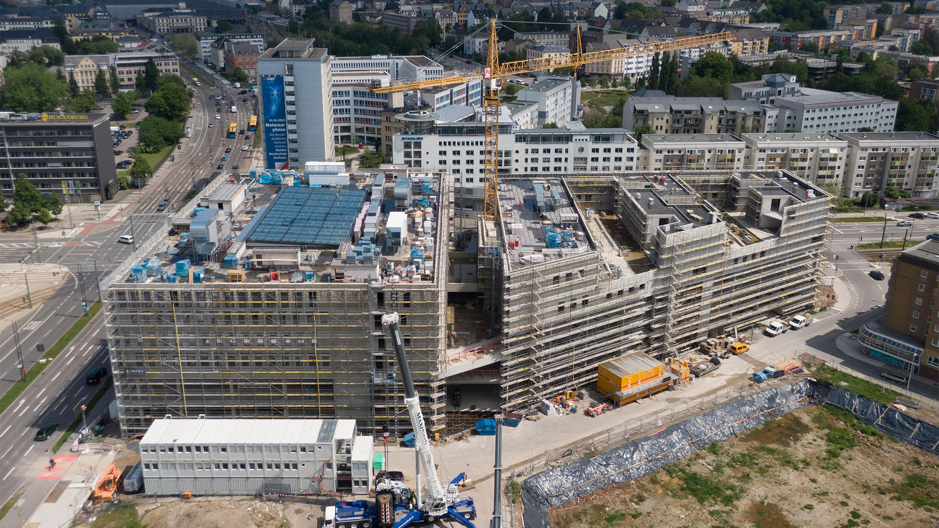 Für die Errichtung wurden rund 700.000 Tonnen Auffüllmasse, 158.000 Tonnen Beton sowie 3.400 Stahlbeton-Fertigteile verbaut. Insgesamt wurden 101.000 m² befestigte Außenflächen geschaffen, von denen rund 80 % betoniert wurden. Diese robuste Ausführung gewährleistet maximale Belastbarkeit und optimalen Verkehrsfluss für moderne Logistikprozesse.